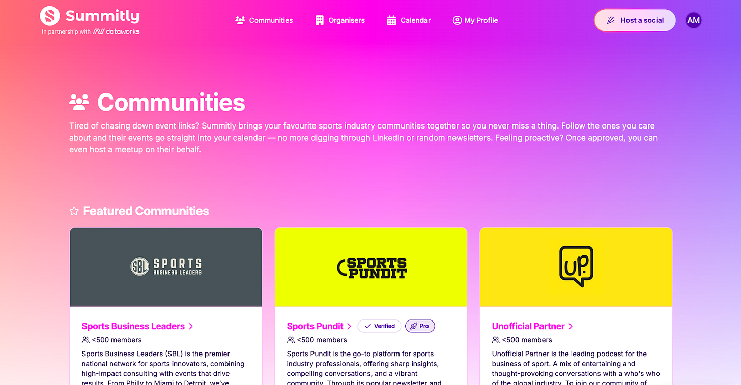 Community Discovery – A growing index of groups and networks shaping conversations across the sporting ecosystem.